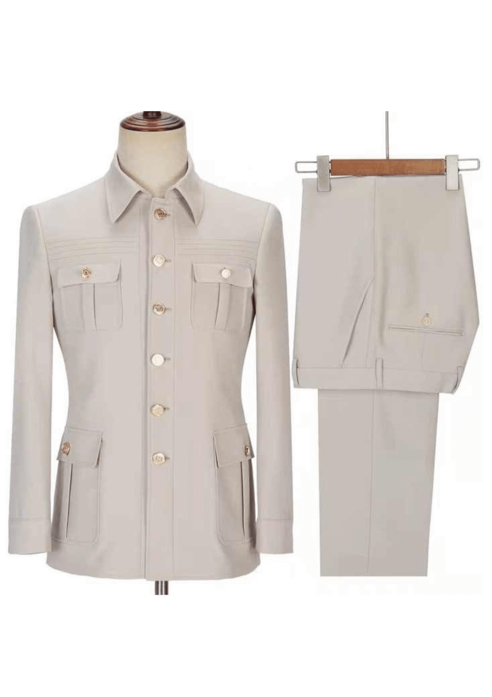 This classic beige safari suit offers the perfect balance of elegance, functionality, and comfort. Designed with a structured four-pocket jacket, it combines practicality with timeless style, making it a versatile addition to any wardrobe. Crafted from premium suiting fabric, the suit ensures a lightweight, breathable, and durable finish, allowing ease of movement while maintaining a polished look. The tailored trousers provide a sleek silhouette, making this outfit ideal for business functions, cultural gatherings, weddings, and high-profile events. A sophisticated choice for men who value tradition and modernity, this safari suit is a wardrobe essential that commands presence and respect.